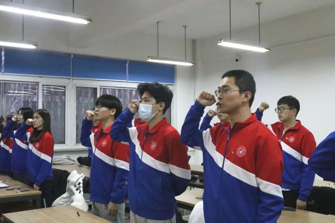 会议最后,团支书带领同学们重温入团誓词并进行宣誓。