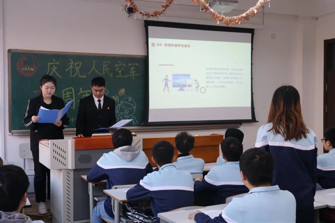 为庆祝中国人民空军成立72周年,致敬蓝天守护者,提高同学防诈反诈意识,增强全民消防意识,安全意识和疫情防控意识,milan米兰官网大数据2001班于11月26日组织开展十一月主题团日活动,milan米兰官网团委书记张佳出席本次活动。